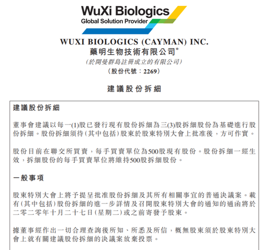 药明生物拟股票1拆3,公司股价涨2.5%,最新市值2658亿港元。