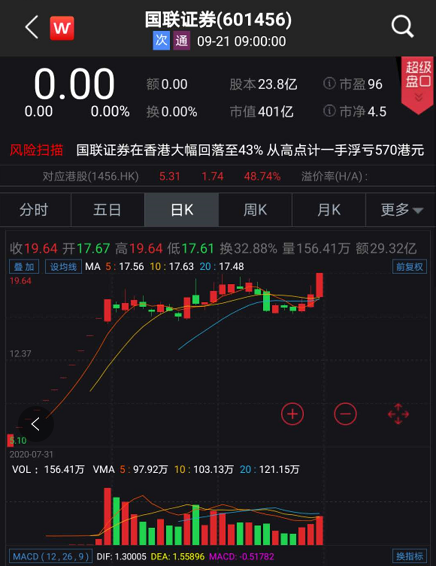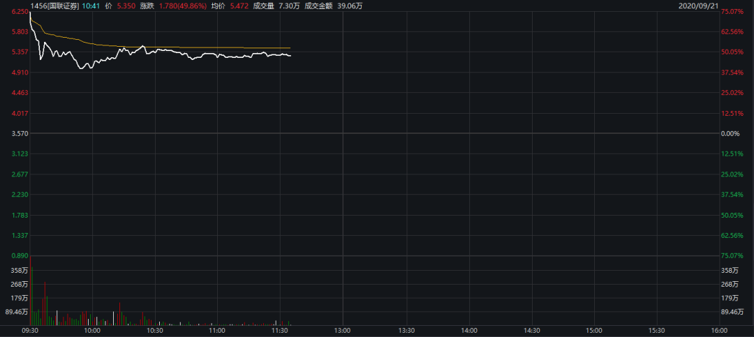 尽管当天,国联证券和国金证券A股正式停牌;但国联证券H股却并未停牌。9月21日早间,国联证券港股开盘一度涨超75%以上,报6.50港元,创下股价新高。随后股价涨幅略有收窄。