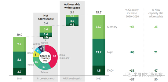 来源:超大规模集成电路研究;SEMI 2020年第二季度更新;BCG分析。