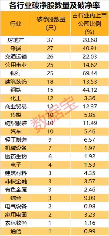 破净股行业集中于房地产 银行占比最高