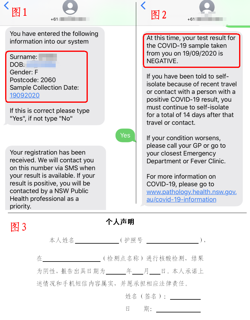 四、只取得新州卫生部门短信报告且确实无法获取书面报告的旅客,请在微信小程序上传以下三张图片: