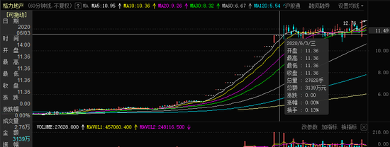 但5月11日宣布筹划收购珠免集团100%股权并停牌后就不同了。5月25日复盘后,格力地产迎来了连续8个涨停板,股价从5.3元/股涨至11.36元/股,涨幅高达114%,且远远超过与定增方约定的7.3元/股。