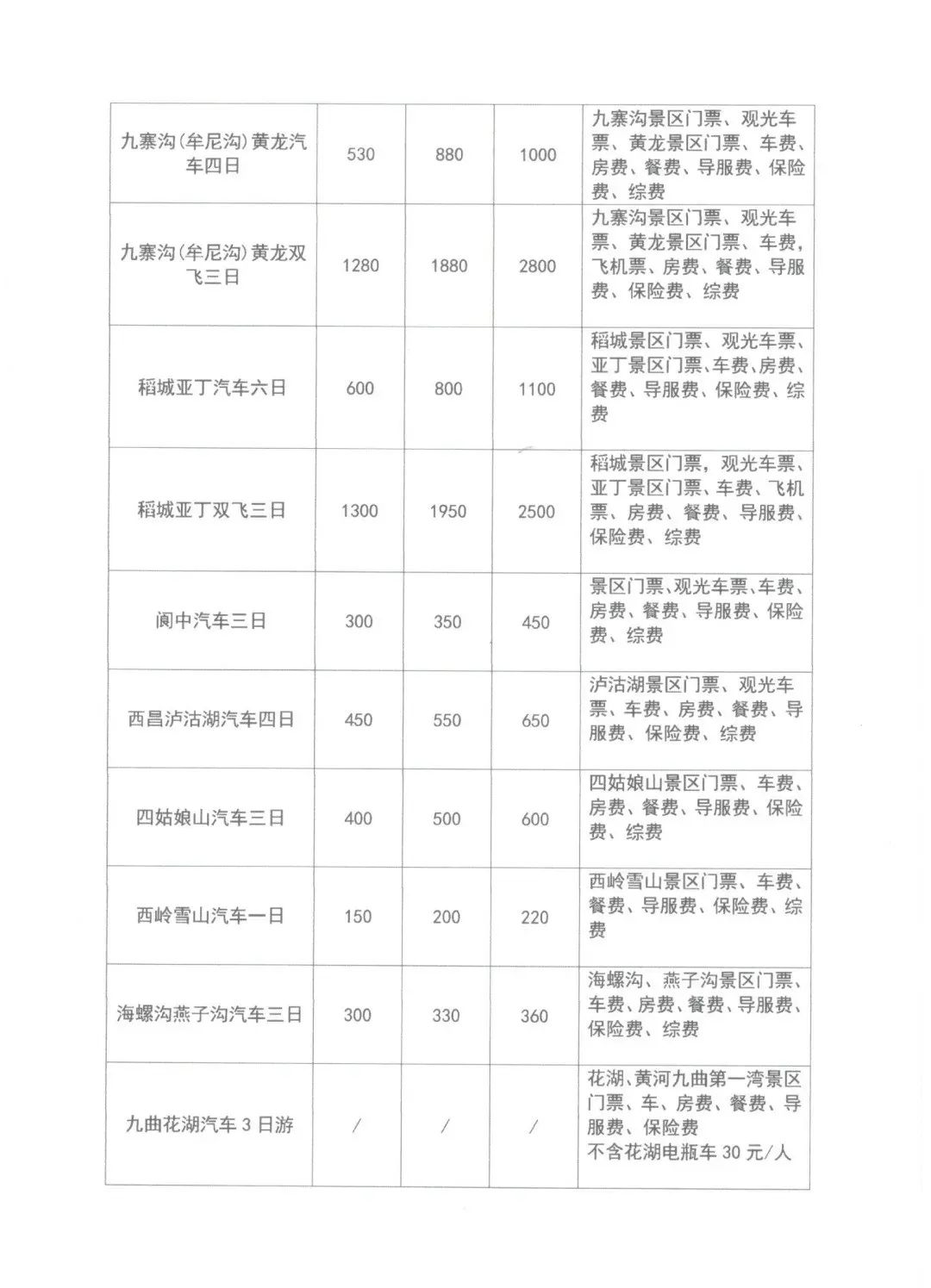 2020年四川省热点旅游线路参考价