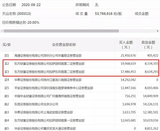 在天山生物今日公布的龙虎榜买方席位中,买二的东方财富证券拉萨团结路第二证券营业部买入1996万元,卖出833万元;买三的东方财富证券拉萨东环路第二证券营业部买入1748万元,卖出863万元。