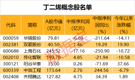 在A股市场上,业务涵盖丁二烯产出的公司并不多。证券时报▪数据宝统计显示,仅7家公司涉及丁二烯业务。华锦股份拥有6万吨丁二烯的产能,是国内特大型炼油化工一体化综合性石油化工企业之一。