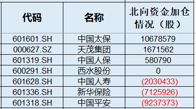 注:9月1日-9月21日北向资金对保险股加仓情况