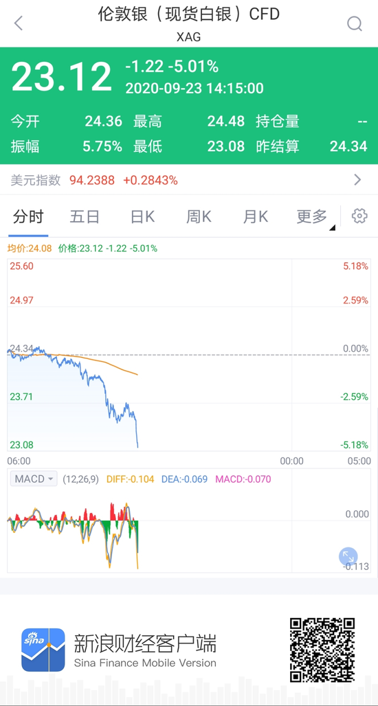 热点栏目现货白银跌幅扩大至5%,现报23.12美元/盎司。