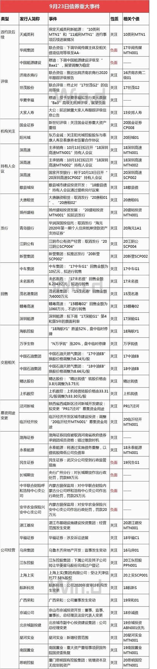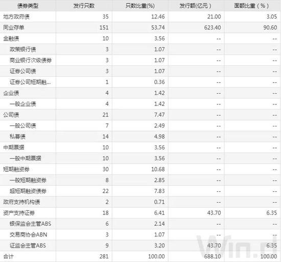 从发债类型看,9月23日,债券市场共发行地方政府债35只,同业存单151只,金融债10只,企业债4只,公司债21只,中期票据10只,短期融资券30只,政府支持机构债2只,资产支持证券18只。