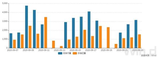 9月23日,债券市场共发行281只债券,总发行量3149.61亿元,159只债券到期,17只债券提前兑付,1只债券回售,无债券赎回,总偿还量1536.16亿元,当日净融资额为1613.45亿元。