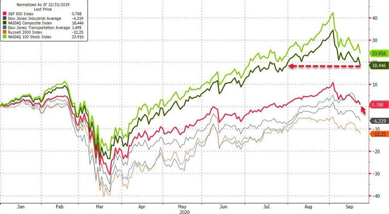 巧合的是,整好是六个月前的3月23日,美国股市在大流行引发的抛售中创下纪录低位。目前,标普500指数已跌至7月下旬以来最低,较三周前创下的纪录高位下跌了9.6%。这该指数距离进入修正区域不到0.5个百分点,纳指上周确认进入修正区域。