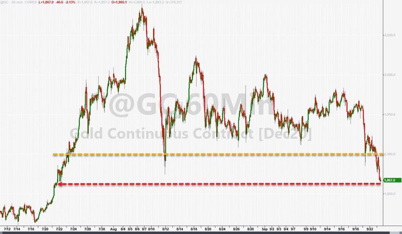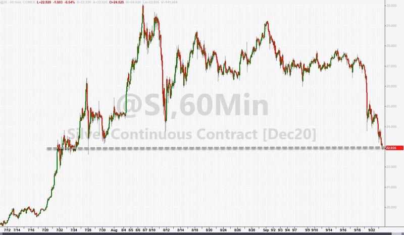 目前黄金较八月份的高点已下跌了逾10%,并测试了8月12日的低点1863美元;白银较八月份的高点下跌了超过23%。
