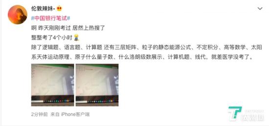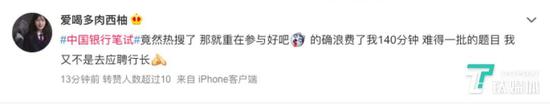 钛媒体App9月27日消息:昨日,“中国银行笔试”这一话题冲上微博热搜。