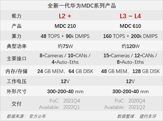 过去的两年中,华为发布了MDC600、MDC300,分别面向L4和L3级别的自动驾驶。