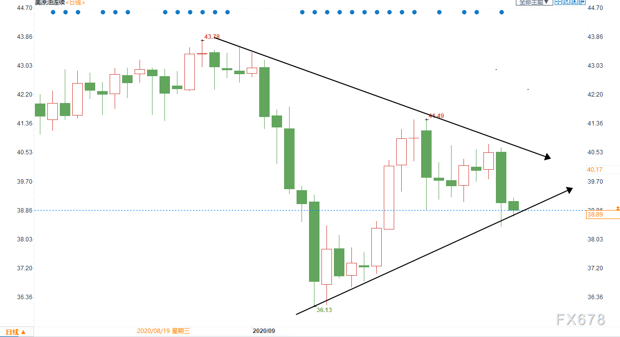 呈现出三角收敛形态,如果原油需求持续疲软且存在进一步回落的空间,预计在10月可能会进一步回调。