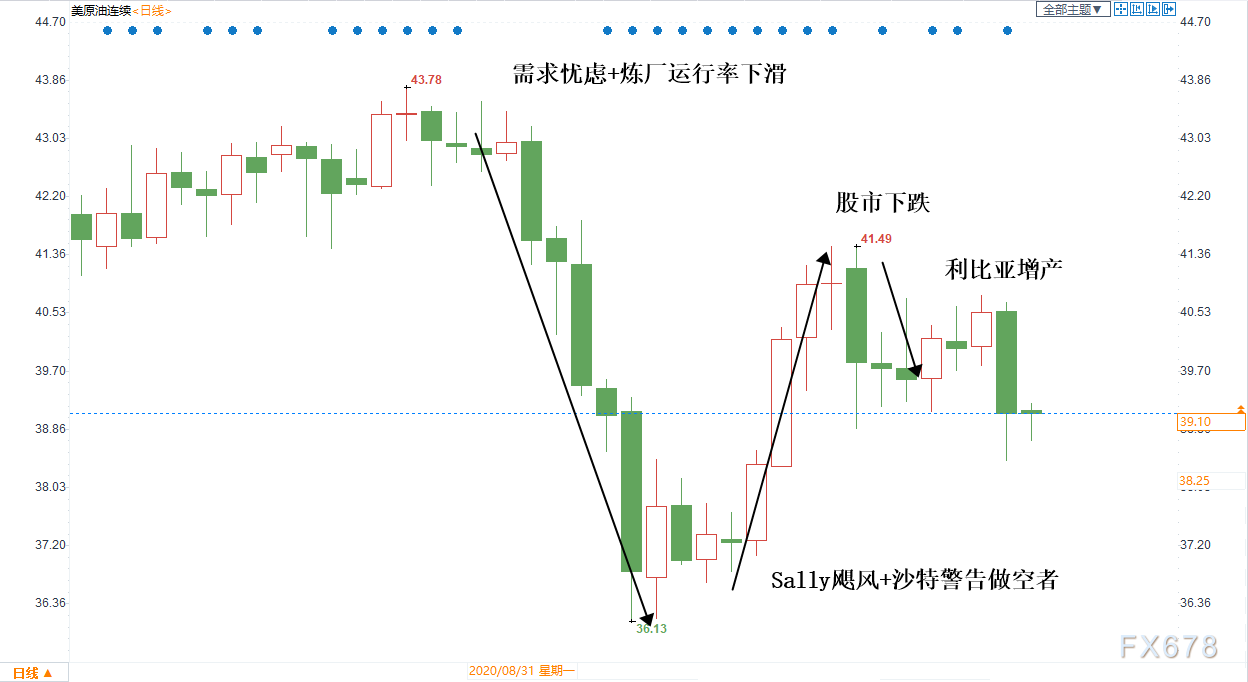 9月中旬受飓风莎莉(Sally)的影响,墨西哥湾部分产能中断,也在短线给油价提供上涨动能,帮助油价从近三个月低位反弹。