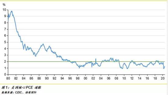 2020年8月,美联储发布了新的《长期目标和货币政策策略声明》。其中一项重要变化是提出了“长期平均通胀目标制”,将2%由通胀目标的“上限”改为“均值”。这意味着,联储将允许通胀在今后较长时间内超过2%,以补偿自全球金融海啸以来美国通胀率长期低于2%的缺口。面对新冠疫情对全球经济的冲击,美联储的新货币政策框架允许其在今后相当长的时间保持宽松政策,以专心致力于促进就业、刺激经济增长。然而,历史数据表明,美国通胀长期低迷有诸多结构性因素,并非简单的周期性现象。如果相关的结构性问题得不到解决,美联储的宽松政策倒有可能带来一系列的副作用,甚至形成更大的通缩压力。