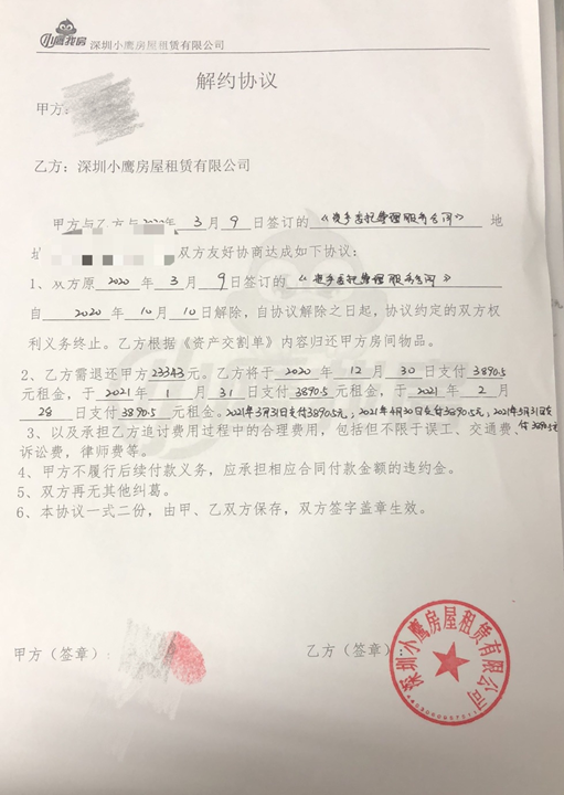 而不少房东表示,每个月收的房租要用来支付房子的贷款金额,自己给小鹰找房和租户时间,银行却不会给自己时间。还有房东表示,加上空置期,小鹰找房欠自己三个多月房租了,根据合同,延迟交支付租金满15个工作日,房东是有权力解除合同的。