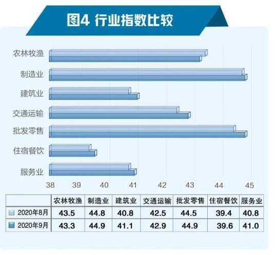 2020年9月份,“经济日报—中国邮政储蓄银行小微企业运行指数”(见图1)为43.9,较上月上升0.2个点,显示市场回暖,企业扩张意愿上升。