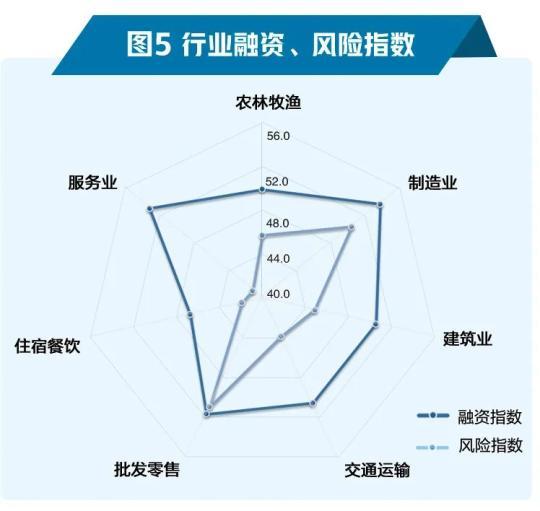 9月建筑业小微企业融资指数为50.6,上升1.0个点;交通运输业小微企业融资指数为50.6,上升0.9个点;批发零售业小微企业融资指数为51.7,上升0.7个点;住宿餐饮业小微企业融资指数为46.7,上升0.4个点;服务业小微企业融资指数为53.1,上升0.8个点。