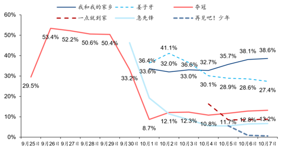 2020 年国庆档影片排片率变化图 数据来源:灯塔专业版、华泰证券研究所