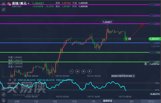 现货金银周一双双收跌,但周二亚盘时段,现货金银一改昨日跌势开始反弹,日内呈上升趋势。以下策略更新于北京时间2020年10月13日9点。
