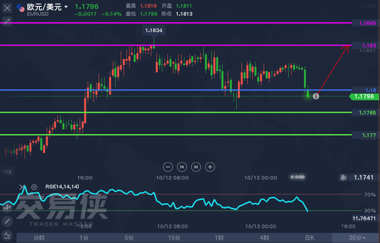 欧元/美元日内存在上升趋势,关注转折点1.1800,若运行在1.1800之上则看涨,目标价位为1.1830,然后为1.1845。若日内运行至1.1800以下,则可考虑备选看跌策略,第一支撑位为1.1785,然后为1.1770。
