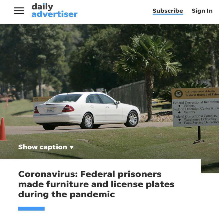 △《每日广告报》报道,联邦监狱囚犯疫情期间仍在制造家具和车牌