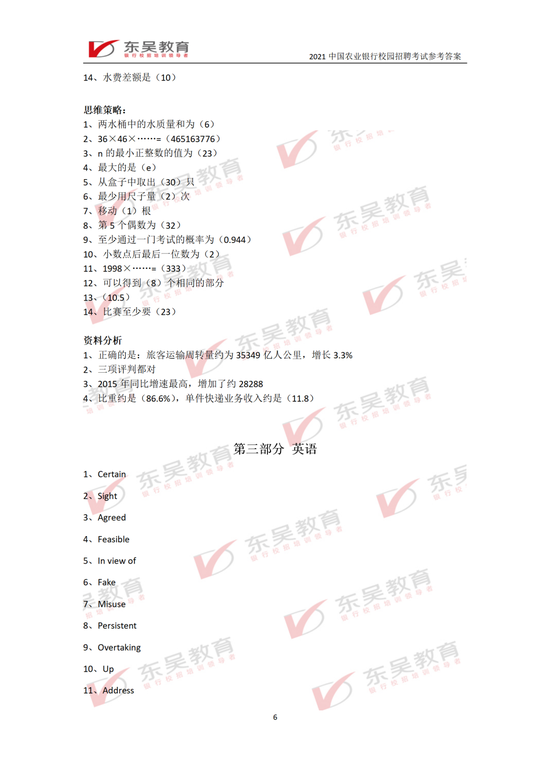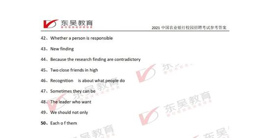 快!2021中国农业银行校招笔试答案新鲜出炉!