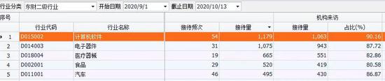 Choice数据显示,计算机、电子板块颇受机构关注,截至10月13日,9月以来机构调研次数最高的前两大行业分别为计算机、电子,均超过了1000次。