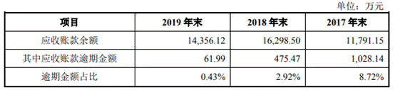 2017年、2018年及2019年1-6月,公司应收账款周转率分别为4.34、4.30、1.88,同行均值分别为3.15、3.26、1.62。2019年公司应收账款周转率为3.72。