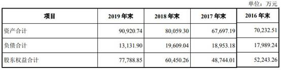 联德机械拟募资额超过去年总资产。2016年-2019年,联德机械资产合计分别为7.02亿元、6.77亿元、8.01亿元、9.09亿元。