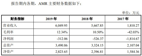 2017年-2019年,桐乡合德营业收入分别为2.41亿元、3.16亿元、2.90亿元,净利润分别为3774.48万元、5599.40万元、5086.49万元。同期,AMR营业收入为1810.27万元、5667.85万元、6049.95万元,净利润分别为-1814.67万元、-526.37万元、-312.06万元。海宁弘德2019年实现净利润1353.94万元。瑞新实业2019年净利润为-494.19万元。