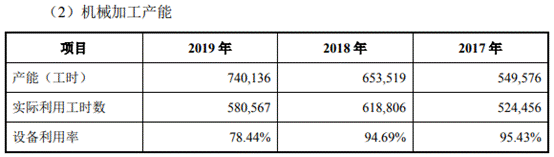 据联德机械招股书,2019年客户受下游需求减少影响,工程机械零部件客户向公司采购减少,从而导致收入略有下滑。此外,2019年受中美贸易摩擦影响公司产能利用率短期有所下滑。