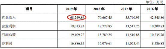2017年、2018年、2019年,公司营业收入分别同比增长31.75%、26.85%、-3.42%;净利润分别同比增长28.86%、45.31%、5.01%。