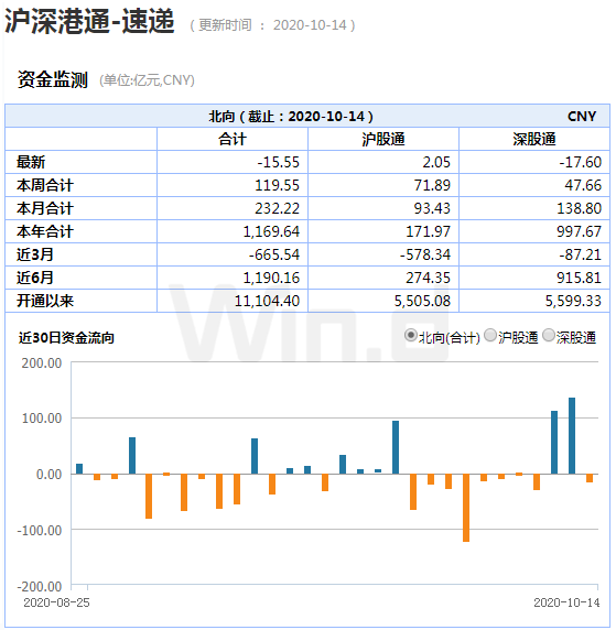 周三北向资金恢复交易,全天净卖出15.55亿元,打破了连续两日大幅净流入的局面。此前两个交易日累计净买入近250亿元。当天北向资金一度净卖出约37亿元,尾盘逐渐流入,沪股通全天净买入2亿元。