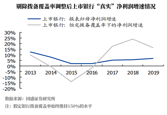 上述两因素表现为不良偏离度的下降以及拨备覆盖率的上市(以工行为例),这导致了银行减值费用居高不下,拖累净利润实现。按照图5测算,17年后银行真实净利润增长要明显好于账面数据。