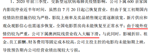 然而,由于境外疫情仍较为严重,万达电影下属的澳洲院线营业收入仍在大幅下滑。