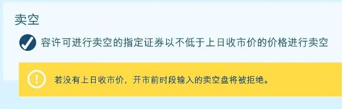 另外值得注意的是,若没有上日收市价,开市前时段输入的卖空盘将被拒绝。