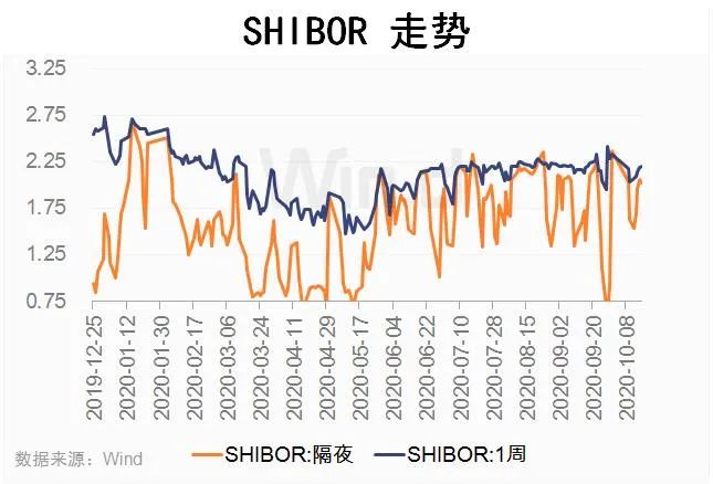 10月16日,shibor隔夜为2.017%,较上周涨38.9个基点;shibor1周为2.199%,较上周涨17个基点;shibor2周为2.183%,较上周涨12.9个基点;shibor3月为2.786%,较上周涨7.1个基点。