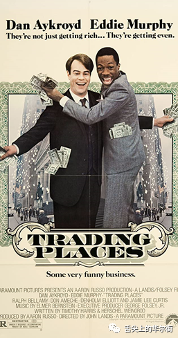 派拉蒙影业公司发行的 Trading Places 《颠倒乾坤》于1983年6月在美国上映。这部由Dan Aykroyd 和Eddie Murphy主演的经典喜剧片日后成为期货行业从业者的必看电影。这比1984年的 Wall Street 《华尔街》还早一年,而那部片子向全球普及了华尔街投行,也是金融行业的励志电影之一。
