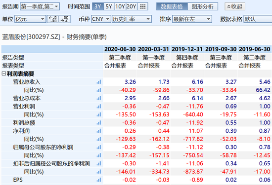 公司财务数据显示,近期蓝盾股份经营欠佳,营收和利润数据均大幅下滑,并已连续三个季度出现亏损。