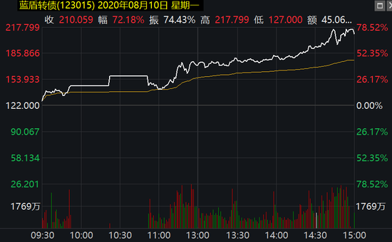一段时间的沉寂之后,8月10日,蓝盾转债暴涨72%。