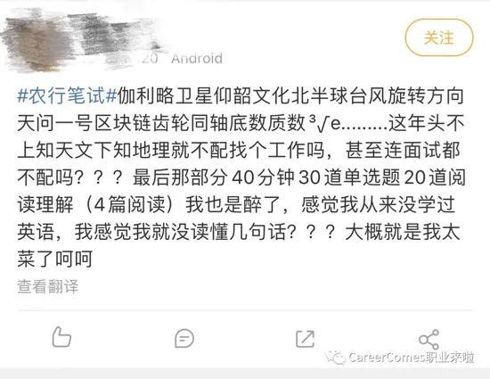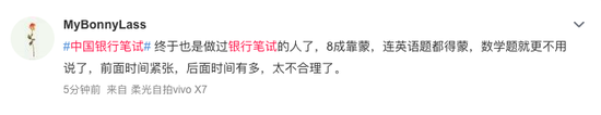 此外,农行、交行等各家银行的笔试也都引发网友热议。不少网友表示,“真的不知道这些银行笔试考这么难有什么用”“这是要培养一个全能人才的节奏啊”。