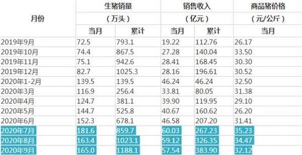 进入三季度后,公司销量稳步增长,7至9月销量依次为181.6万头、163.4万头和165万头,均高于6月峰值水平。