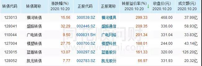 如果说,19日,市场炒蓝盾转债、横河转债等,是因为买不到蓝盾股份等涨停的正股后,转而去买债,因此大涨尚有逻辑可言。20日则很明显是资金的纯炒作行为,从正股来看,蓝盾股份并未继续封板,在早盘最高冲至14%后,便震荡回落,到收盘蓝盾股份涨幅已不足2%。对比最鲜明的是,盛路转债大涨60%多,2天也几乎翻倍,但正股盛路通信下跌!