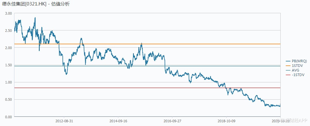 在基本面有一定瑕疵的情况下,德永佳集团自10月14日以来仍旧录得了不错涨幅,这主要得益于两方面,其一是市值相对较小,易于炒作;其二,公司估值极低。以PB估值来看,该公司已处于10年来的最低水平,仅0.37倍PB,沦为烟蒂股,市值低于净资产。