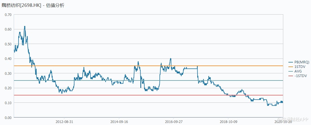 而从估值上看,魏桥纺织是四个标的中最低的,PB估值仅0.11倍,处于十年来的最低水平,当然,如此低的估值也与公司包括了电力业务有一定关系。