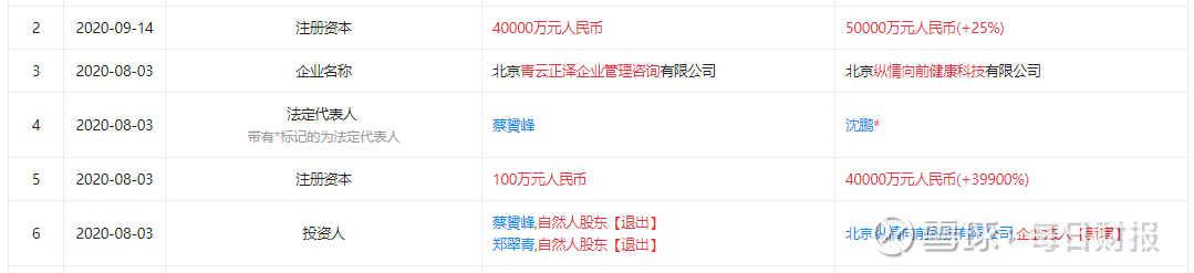 2020年8月,沈鹏成为该公司法人代表。8月3日,该公司注册资本由100万变成4亿元,9月14日,注册资本由4亿变成5亿元。