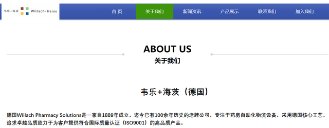 但在为其贡献最大头营收和利润的子公司——韦乐海茨的官方网站介绍中,依然首先强调的是德国Willach的背景,并强调“采用德国核心工艺”;同时,招股书也披露目前韦乐海茨的核心产品B和H系列发药机仍然使用Willach所拥有的商标。