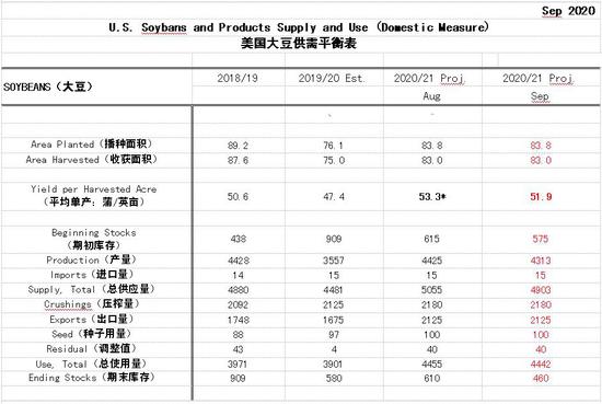 图表2:USDA9月月度供需平衡表(美国大豆部分)